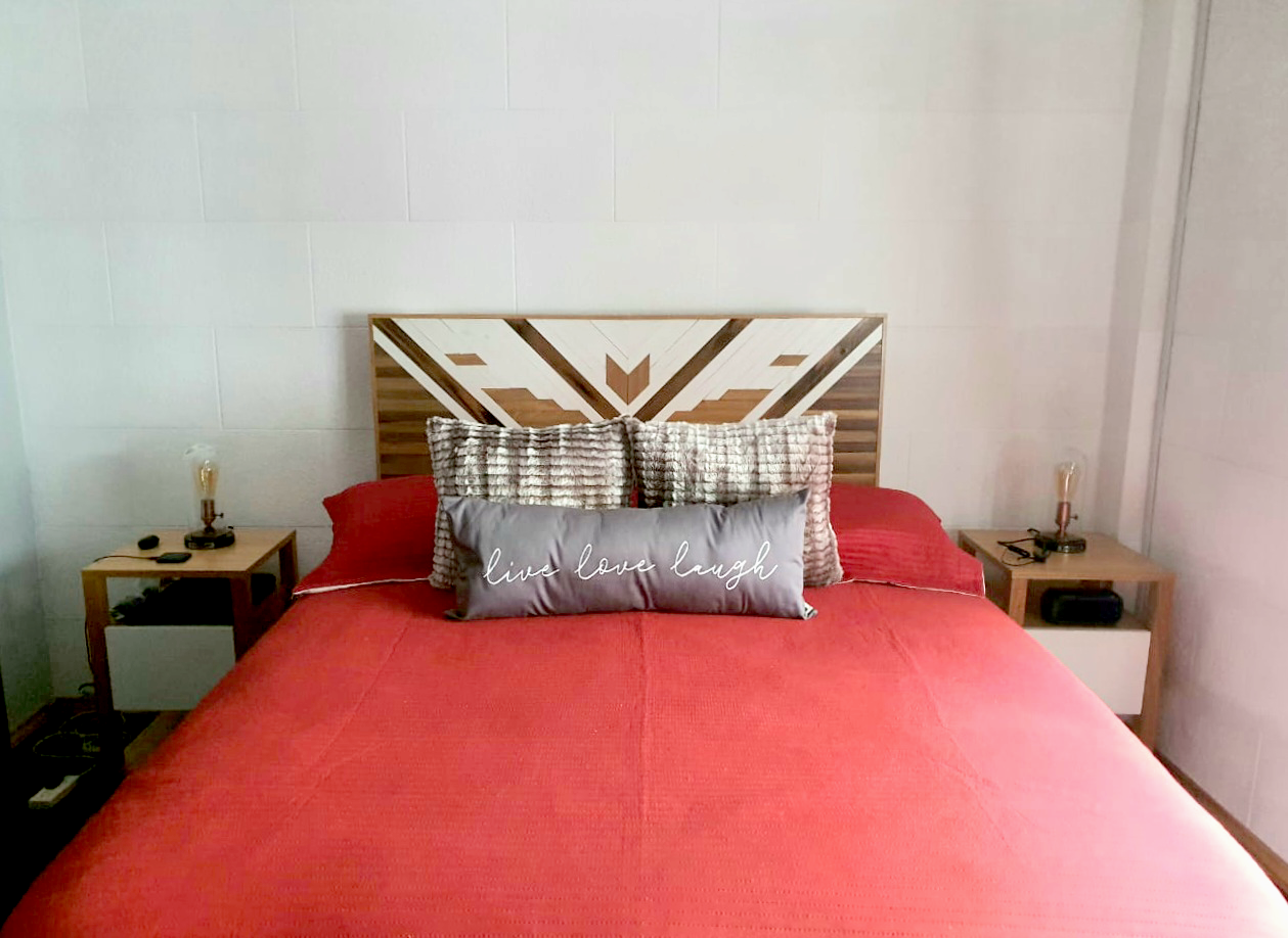 Si tu pared es de durlock, tenés la opción de pedirnos patas de madera para tu cabecero.
